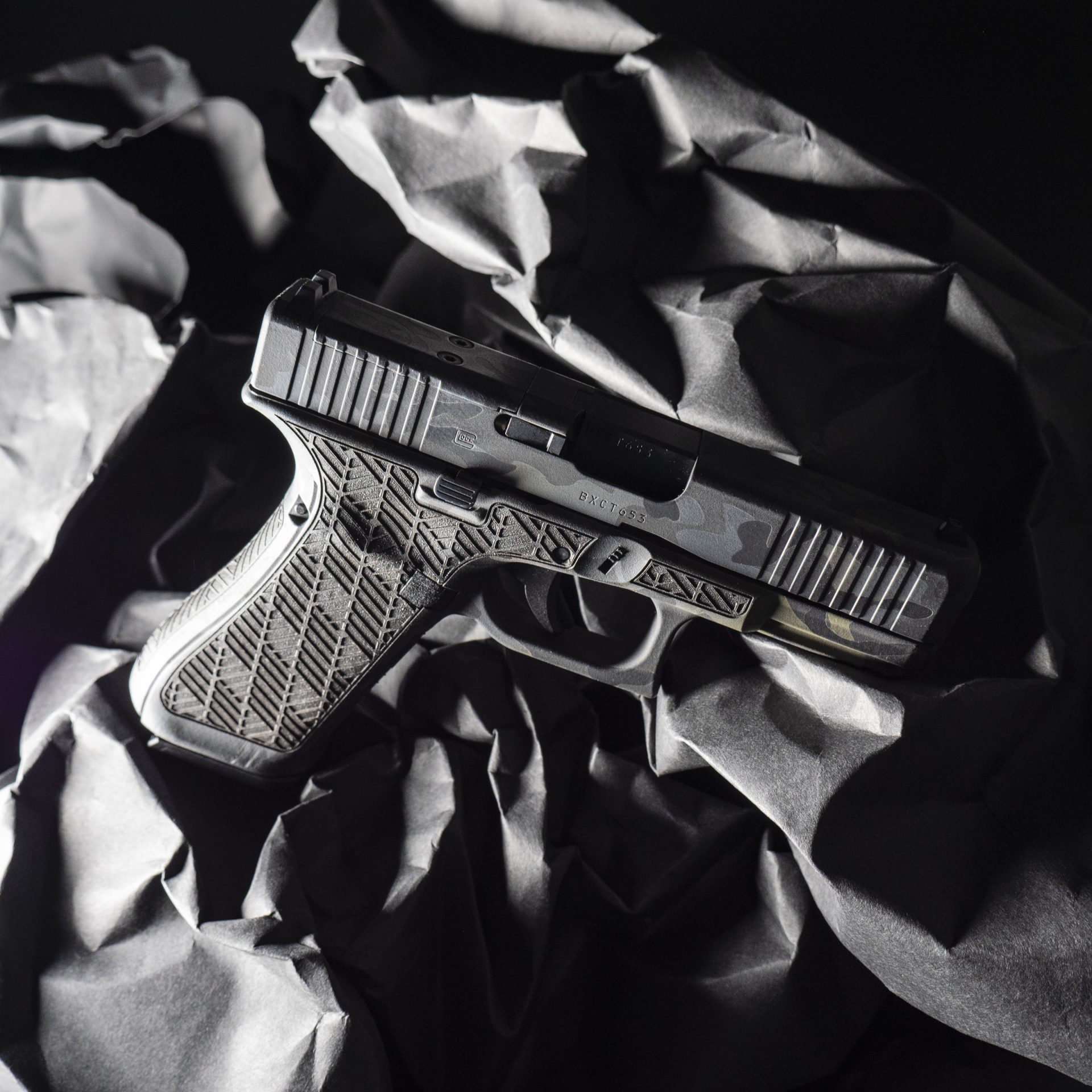 At the conclusion of the webcast, one (1) eligible entrant will be randomly selected to receive first purchasing access to the featured GUNBROS Custom Glock 45 MOS 9mm Black Multicam.